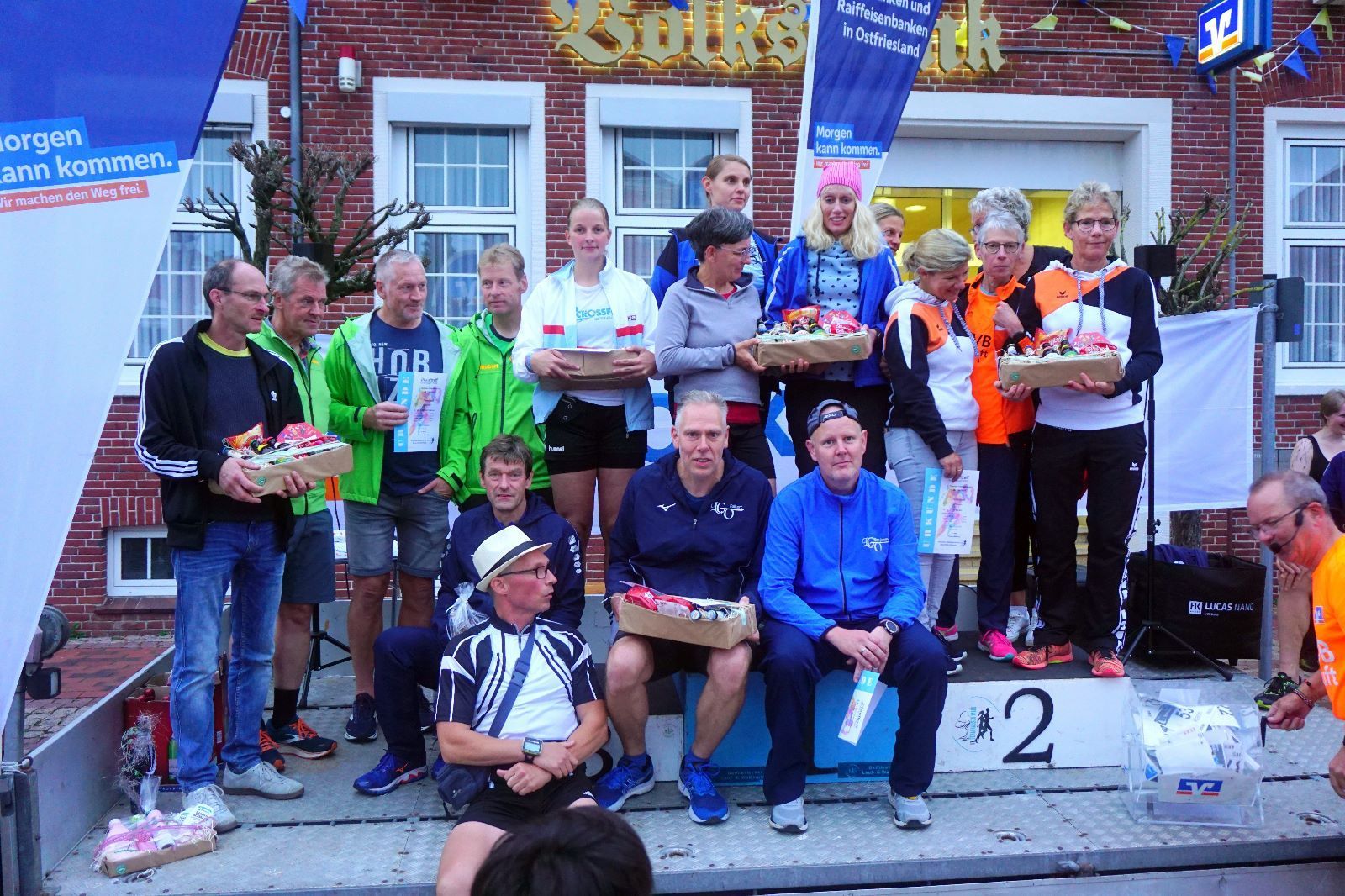 gewann das Team die Mannschaftswertung über die 5 km-Distanz mit der Gesamtzeit von 1:31:50 h. Ein Vorsprung von 29 sec. vor der Mannschaft der LG Harlingerland 1 reichte zum Sieg.